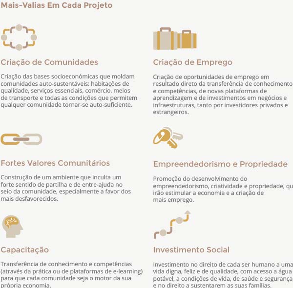 Fomentar comunidades nos mercados emergentes através do investimento no desenvolvimento das pessoas com vista à sua emancipação e melhor qualidade de vida.